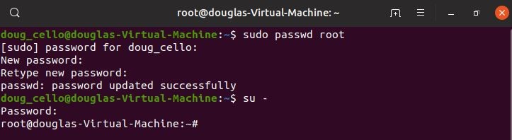 2. Digite o comando sudo passwd root. Informe sua senha de usuário comum;