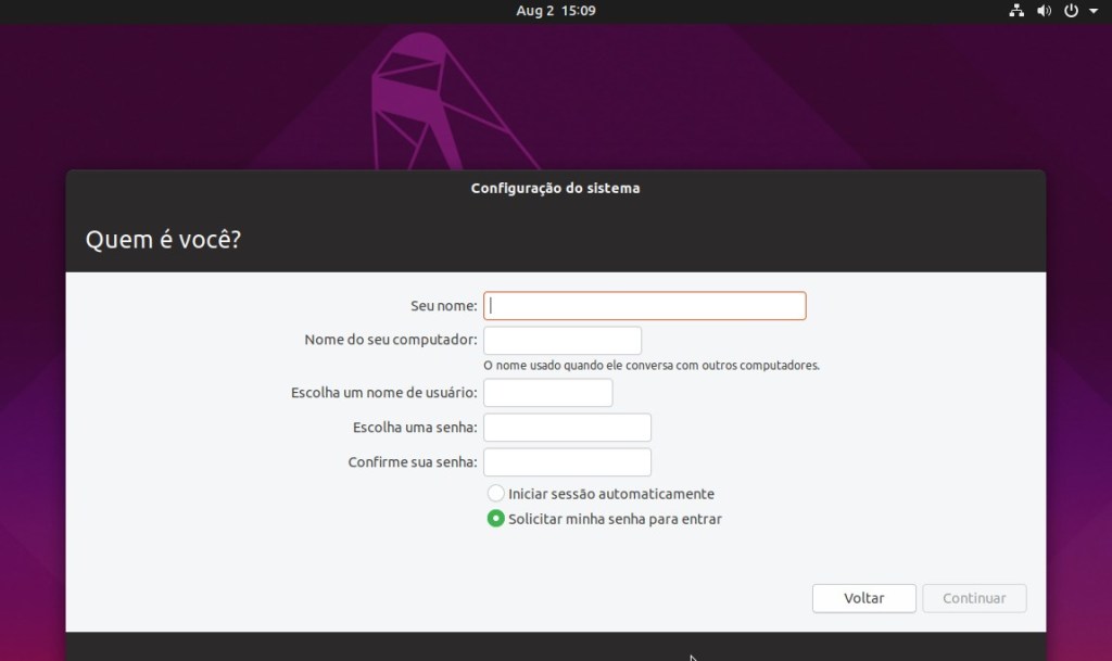 9. Criar o primeiro usuário. (Passo importantíssimo para o acesso ao Linux).