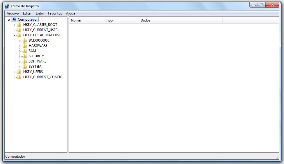2º Passo – Selecionar o diretório HKEY_LOCAL_MACHINE: