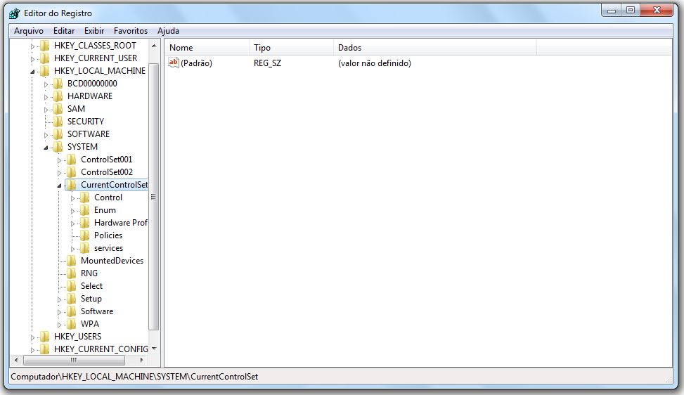 4º Passo: Selecionar o diretório CurrentControlSet