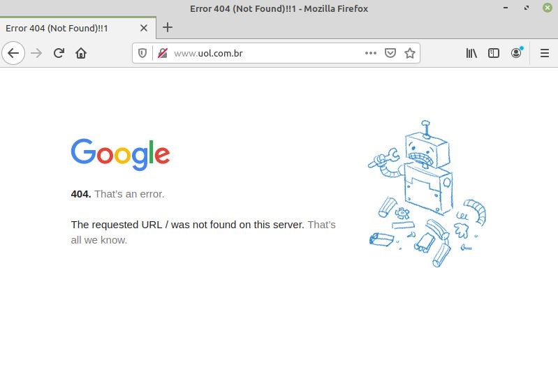 Vou dar um exemplo, mostrando que posso redirecionar uma vítima que tenha requerido no navegador de internet o acesso ao site http://www.uol.com.br e vou direcionar fraudulentamente para o site http://www.google.com sem que ela tenha consentimento.