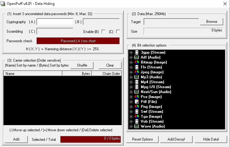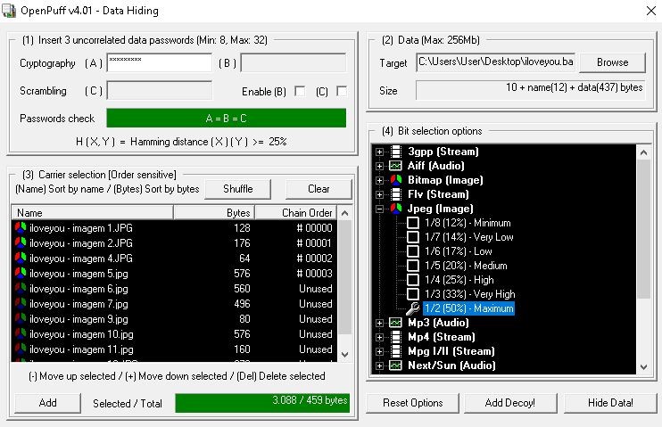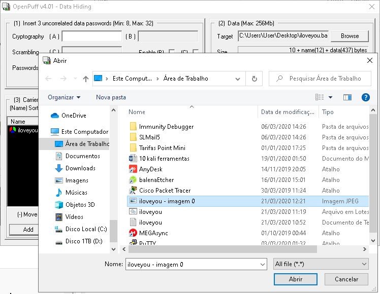 Para isso, iremos precisar de um programa chamado OpenPuff. Nele, você esconderá o arquivo inserindo uma senha. A pessoa que irá receber o arquivo precisará ter ele instalado na máquina também.