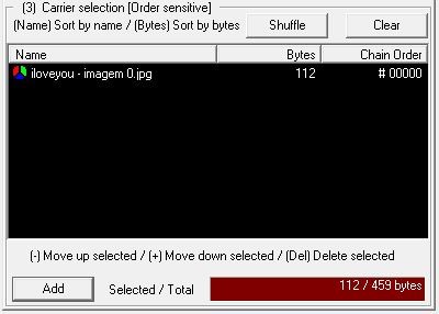 O objeto-container que utilizei sozinho não resolveu nesse caso para esconder o arquivo iloveyou.bat. Portanto, inseri mais imagens até ficar verde embaixo. Cliquei no botão Clear e em seguida entraram as fotos: