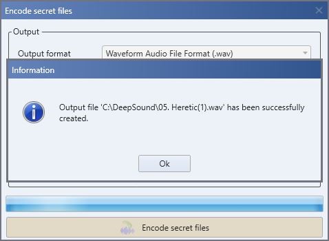 Clique no botão Encode secret files para que o estego-objeto seja criado.