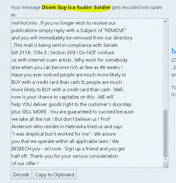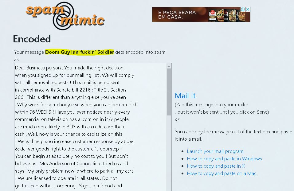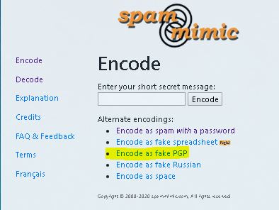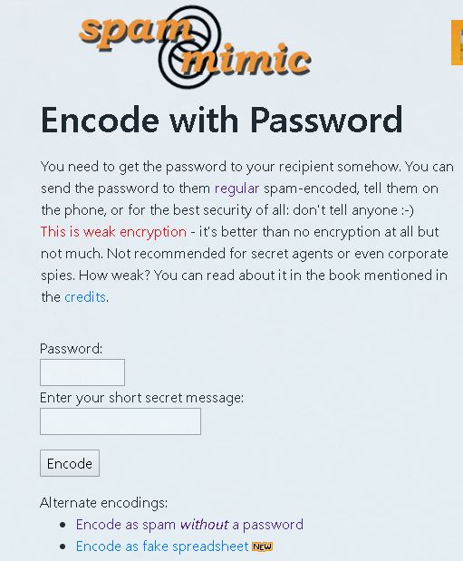 Com a mensagem codificada, você pode copiar para um e-mail que queira passar para alguma pessoa e em seguida falar pra pessoa acessar o spammimic e decodificar com a senha que você fornecer.