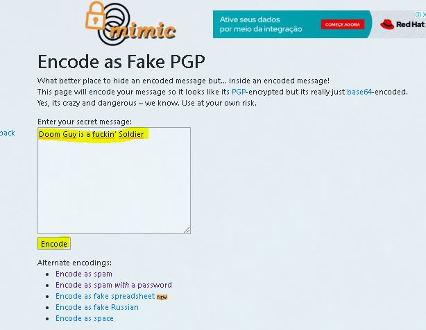 Como outro exemplo, irei exemplificar como Codificar como PGP falso. Clique em Encode as fake PGP na tela inicial.