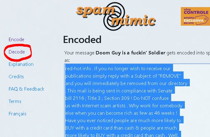Dentro dessa SPAM MESSAGE a mensagem secreta selecionada com marca-texto está escondida.