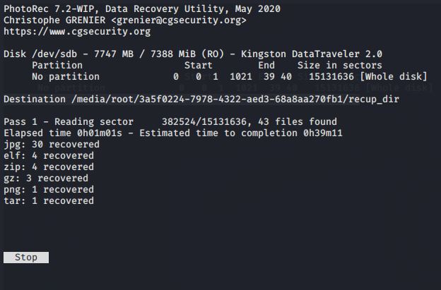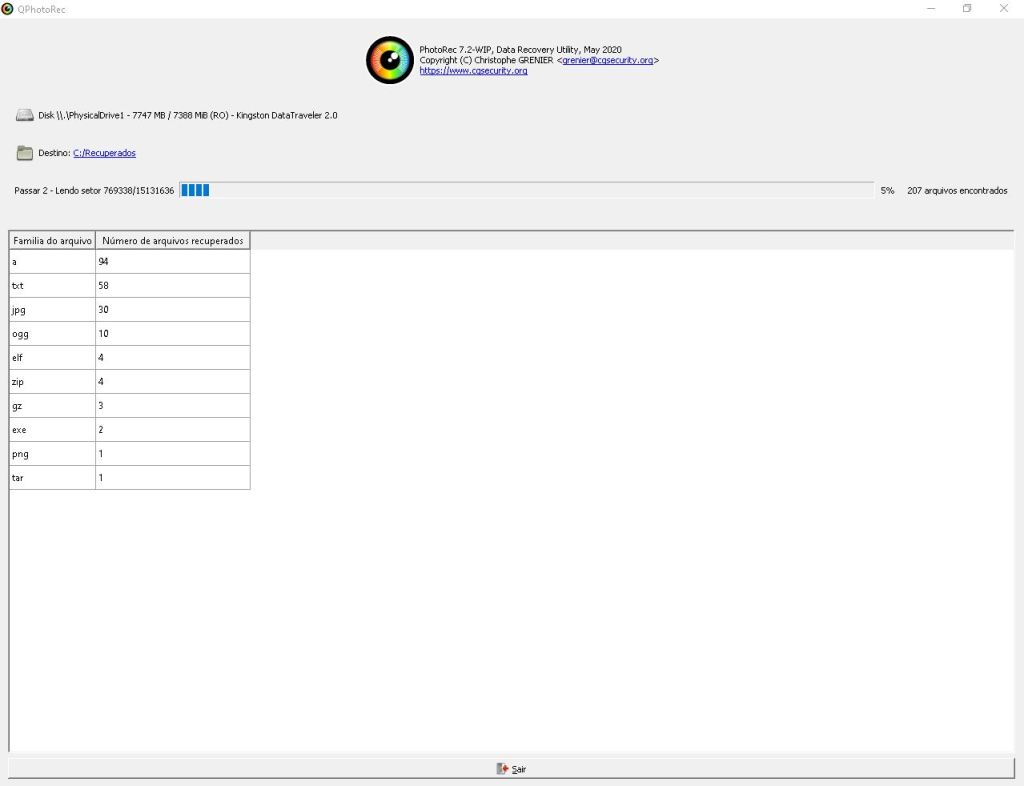 O PhotoRec ignora o sistema de arquivos e segue os dados subjacentes; portanto, ele continuará funcionando mesmo que o sistema de arquivos da mídia tenha sido severamente danificado ou reformatado.