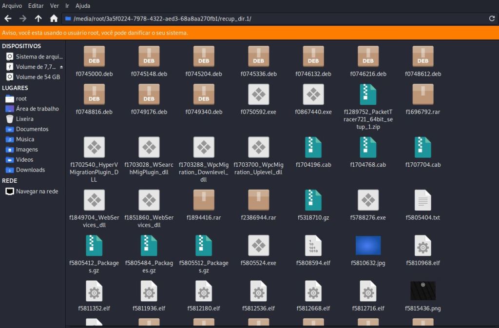 Concluída a operação, você pode ir no diretório verificar os arquivos que conseguiu recuperar.