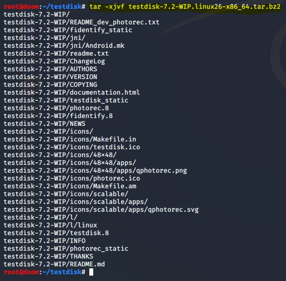 x86_64 – tar –xjvf testdisk-7.2-WIP.linux26-x86_64.tar.bz2