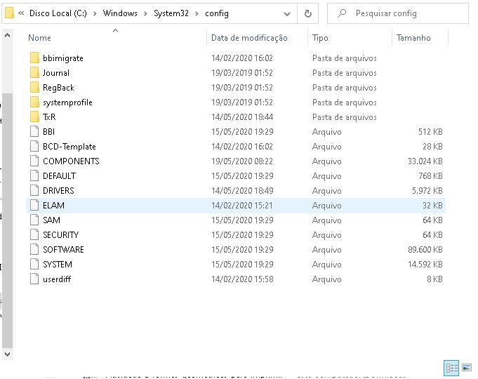 Temos que copiar as estruturas SAM, segurança, software e sistema para nosso diretório de exames.
