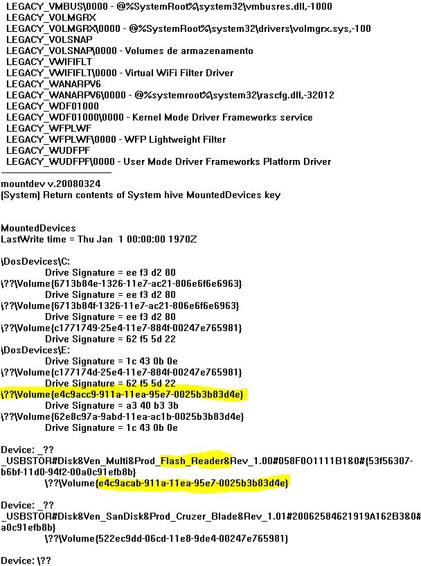 Informações particularmente interessantes são relatadas sobre o nome do computador, ID, discos rígidos, unidades montadas, interfaces de rede, lista de serviços e drivers e, na parte inferior, as unidades USB conectadas. Geralmente contem informações muito úteis para investigação forense, porque lista todos os dispositivos USB conectados e a hora em que eles foram conectados. O modelo e o número de série do dispositivo.