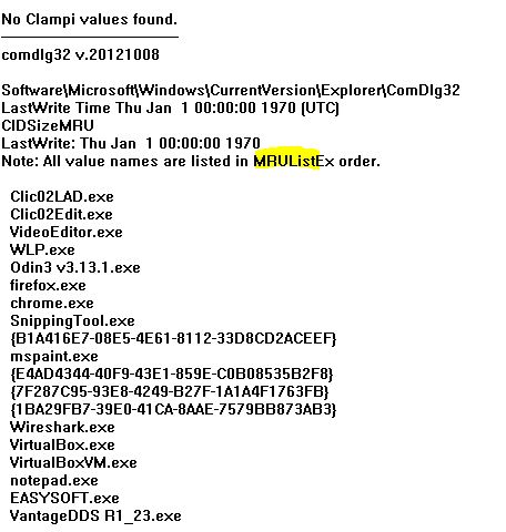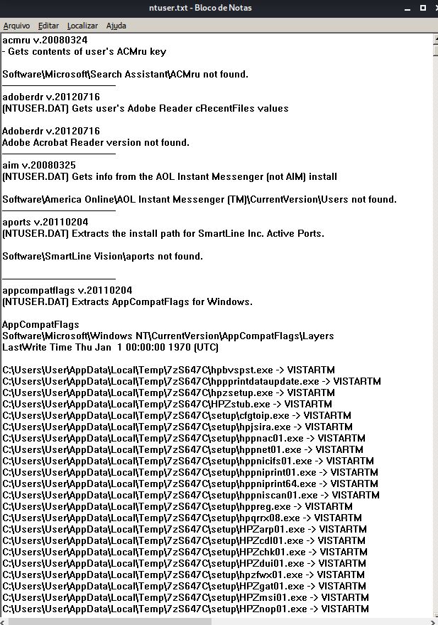 Agora, vamos dar uma olhadinha no arquivo de relatório NTUSER.DAT. Nós vamos encontrar as informações relativas às atividades do usuário: