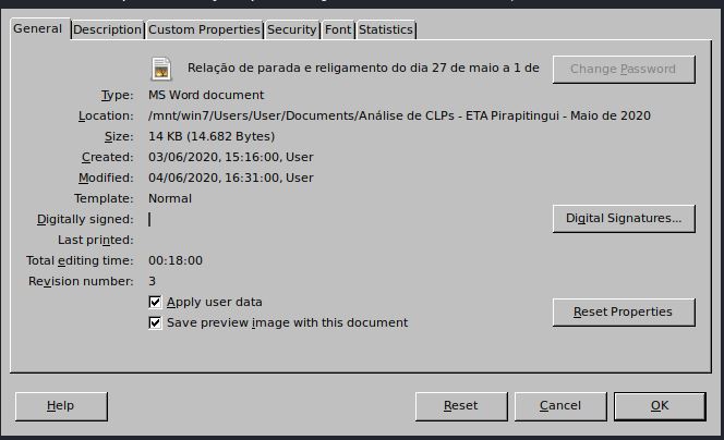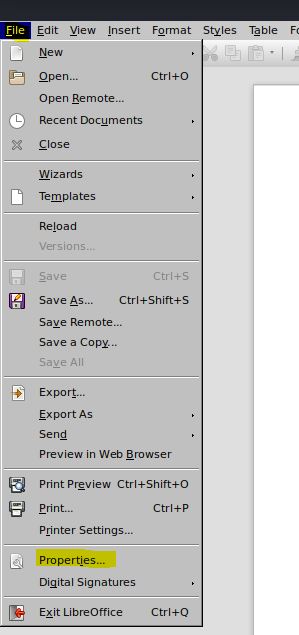 Também podemos visualizar os metadados de um documento do office com o libreoffice abrindo o documento com o programa e selecionando File >> Properties