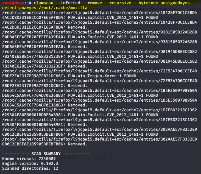 clamscan –infected –remove –recursive /root/.cache