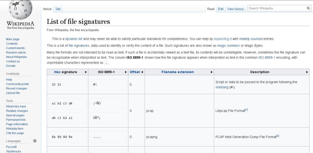 Para ver uma lista de números mágicos de tipos de arquivos comuns, podemos consultar esta página na Wikipedia: