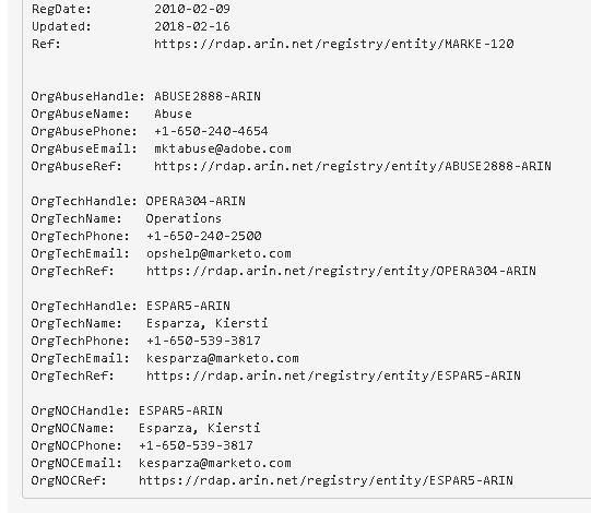 - Abuse Contact API (Contato de abuso de um endereço pesquisado);