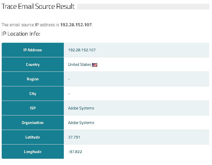 Utilizando a ferramenta Trace Email Source, os dados apresentados pelo que percebi também apareceram com endereço físico diferente: