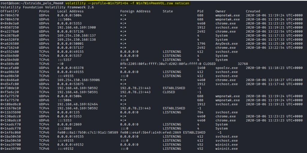 volatility –profile={PERFIL_ESCOLHIDO} –f {NOME_DO_ARQUIVO} netscan