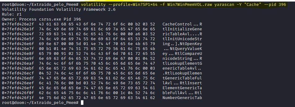 volatility –profile={PERFIL_ESCOLHIDO} –f {NOME_DO_ARQUIVO} yarascan –Y “Cache” –pid {PID_ESCOLHIDO}