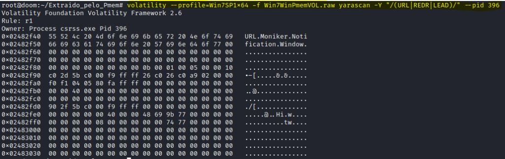 volatility –profile={PERFIL_ESCOLHIDO} –f {NOME_DO_ARQUIVO} yarascan –Y “/(URL|REDR|LEAD)/” –pid {PID_ESCOLHIDO}