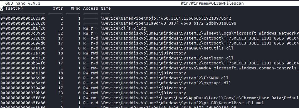 volatility –profile={PERFIL_ESCOLHIDO} –f {NOME_DO_ARQUIVO} filescan > {NOME_DO_ARQUIVO_DE_SAÍDA}