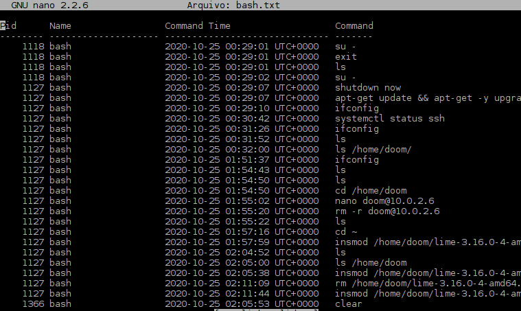 Com o a ferramenta nano, nativa no Kali Linux, abri o arquivo de saída para analisar…