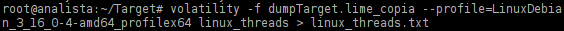 volatility –f {NOME_DO_ARQUIVO} –profile={PERFIL_ESCOLHIDO} linux_threads > {NOME_DO_ARQUIVO_DE_SAÍDA}