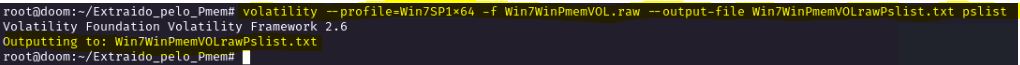 volatility –profile={PERFIL_ESCOLHIDO} –f {NOME_DO_ARQUIVO} –output-file {NOME_DO_ARQUIVO_DE_SAÍDA} pslist