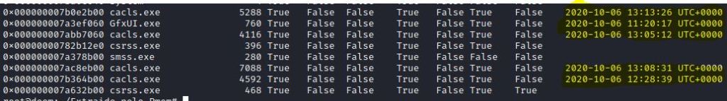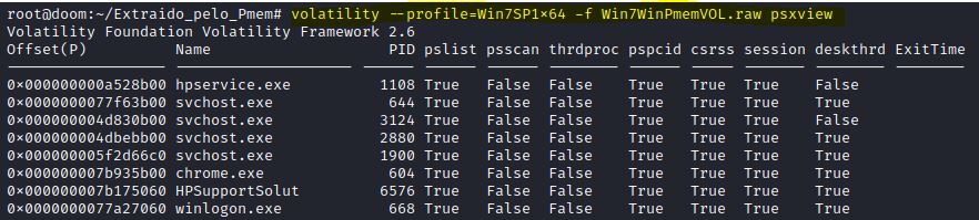 Um plug-in muito utilizado para descobrir o horário de encerramento do(s) processo(s) é o plug-in psxview demonstrado abaixo: