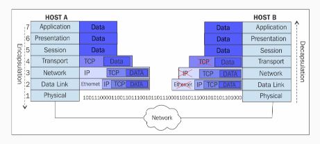 Possui sete camadas principais que vão da mais alta (aplicação) à mais baixa (física). São elas: